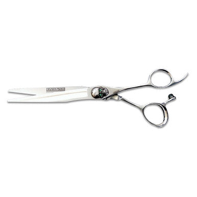 The all-new Typhoon model is hand crafted by senior bladesmiths with Molybdenum Japanese steel. Made with care to last 20-25 years with a Rockwell hardness of 60! Super soft cuts, high durability and versatility, this beautiful tool has a stainless steel finish with a skull ball-bearing tension system warranted for life!