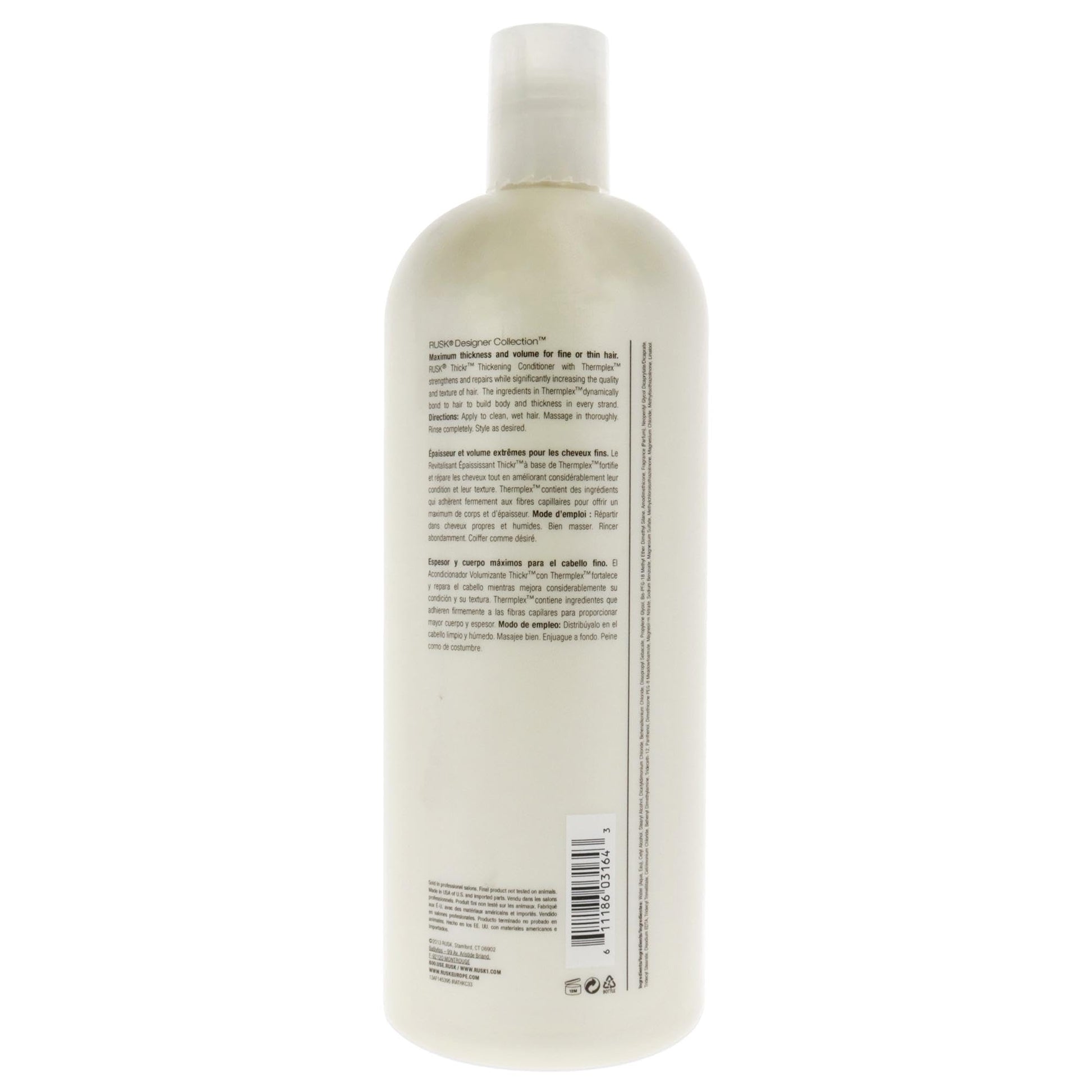 RUSK Designer Collection Thicker Thickening Conditioner for Fine or Thin Hair, Daily-Use to Strengthen and Repair, Gives Full-Bodied Appearance, 33.8 oz