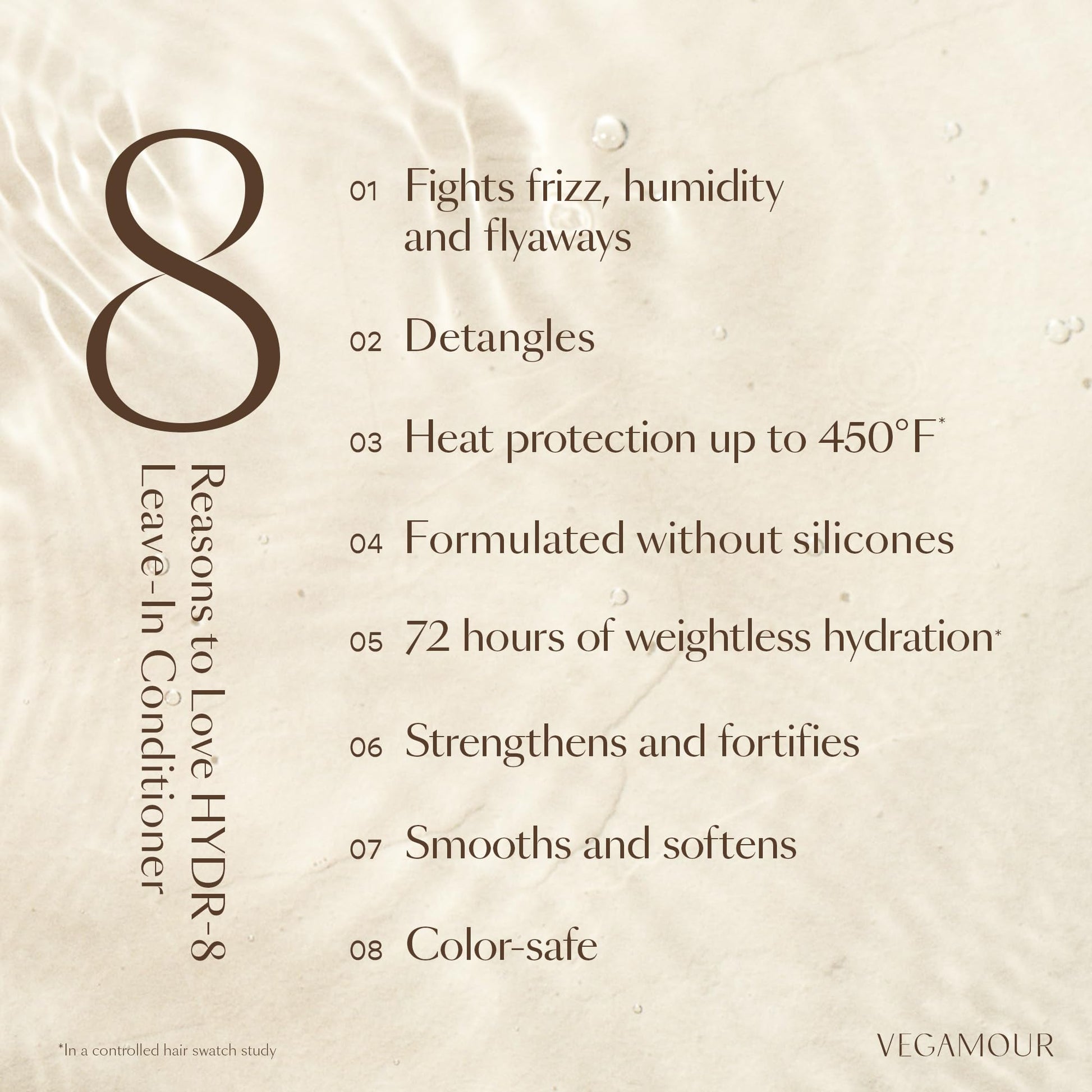 VEGAMOUR HYDR-8 Leave-In Conditioner, for Deep Hydration & Heat Protection, with Vegan Keratin, for Soft, Silky, Frizz Free Hair, 5 fl oz