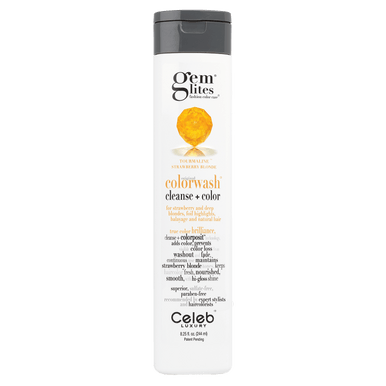 Présentation du NOUVEAU Celeb Luxury Color Colorwash® avec la technologie Colorposit™. La nouvelle catégorie – une révolution scientifique dans la coloration des cheveux ajoute une couleur riche tout en nettoyant avec des résultats hautement revitalisants. Ces 10 couleurs fraîches Gem Lites® Colorwash peuvent raviver vos mèches manquant d'éclat entre les rendez-vous au salon. Commencez à vous laver de manière fabuleuse sans disparaître !