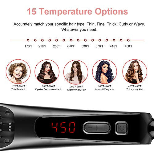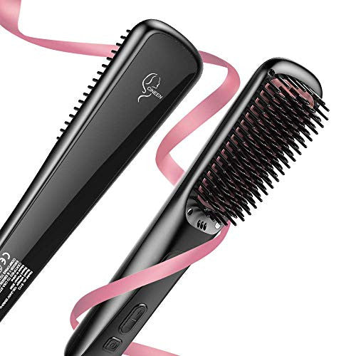 CINEEN Brosse à lisser ionique, brosse à lisser les cheveux avec chauffage rapide en céramique MCH, peigne à lisser avec anti-brûlure, réglage de la température, arrêt automatique pour la maison et les voyages
