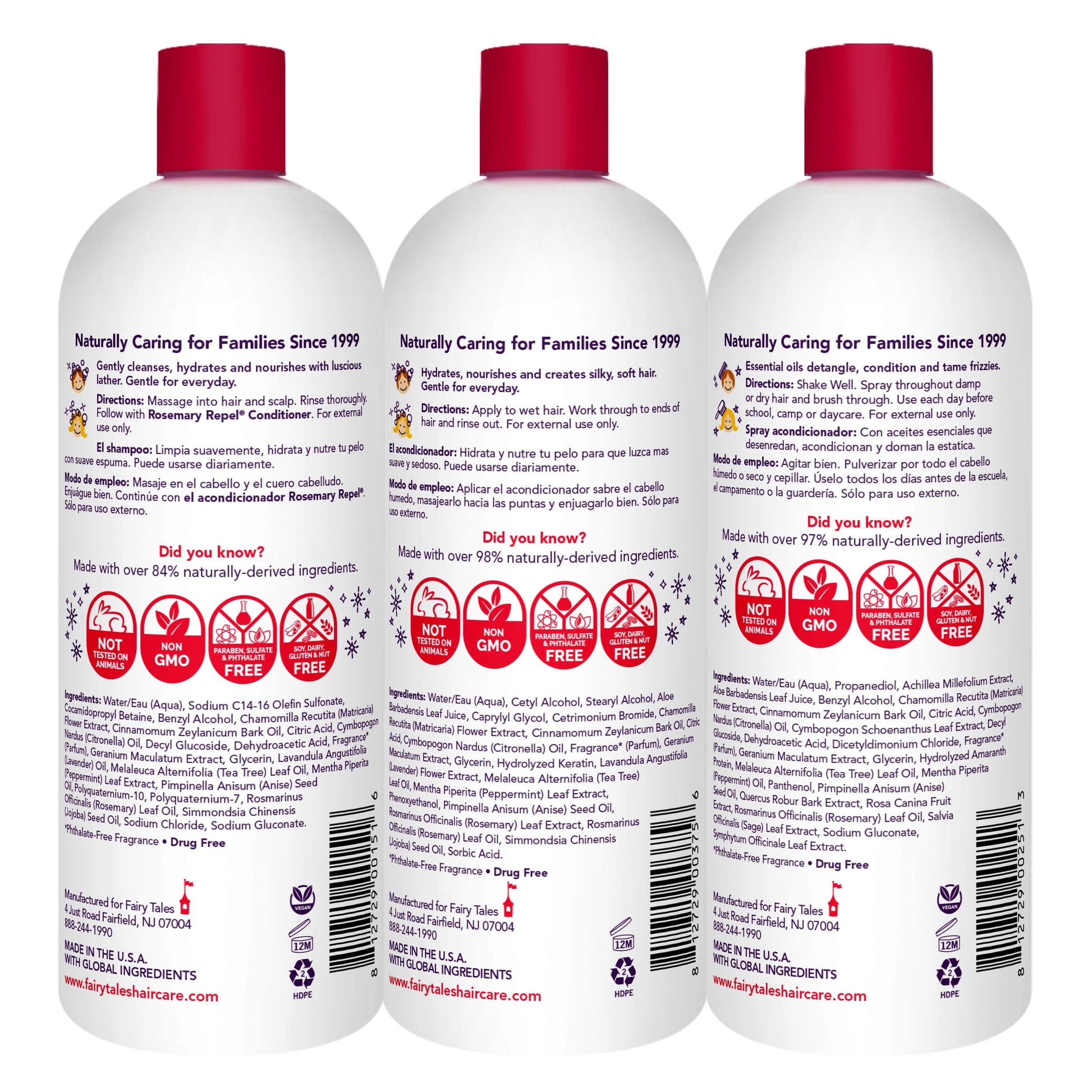 Recharge de shampoing, après-shampoing et spray revitalisant quotidien Fairy Tales Rosemary Repel pour enfants : les enfants aiment l'odeur, les poux, non.