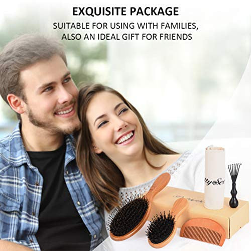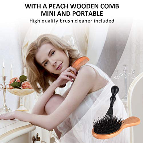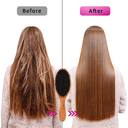 Brosse à cheveux en poils de sanglier pour femmes, hommes et enfants. Brosse à cheveux en bois pour cheveux lisses, bouclés, courts et longs. Ajoute de la brillance et améliore la texture des cheveux. Outil de nettoyage de brosse à cheveux inclus.