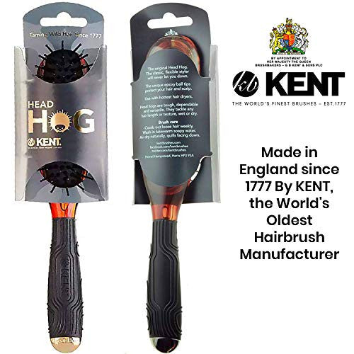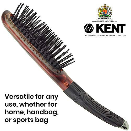 Kent KB Minihog Headhog Brosse à cheveux démêlante de voyage avec coussin en caoutchouc noir et brosse pour cuir chevelu avec poils en plastique arrondis fermes pour femmes, hommes et enfants, soins quotidiens, fabriquée en Angleterre