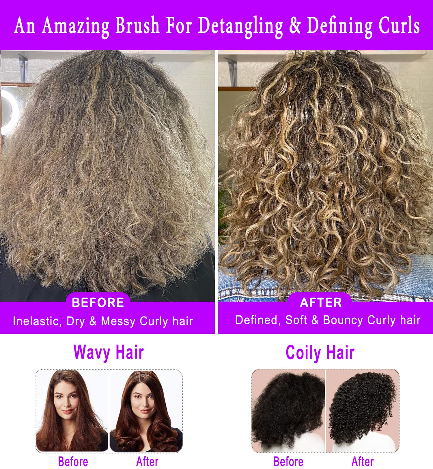Brosse de définition KTKUDY à 9 rangs pour modeler et finir les boucles - Brosse démêlante pour cheveux épais, ondulés ou bouclés (violet)