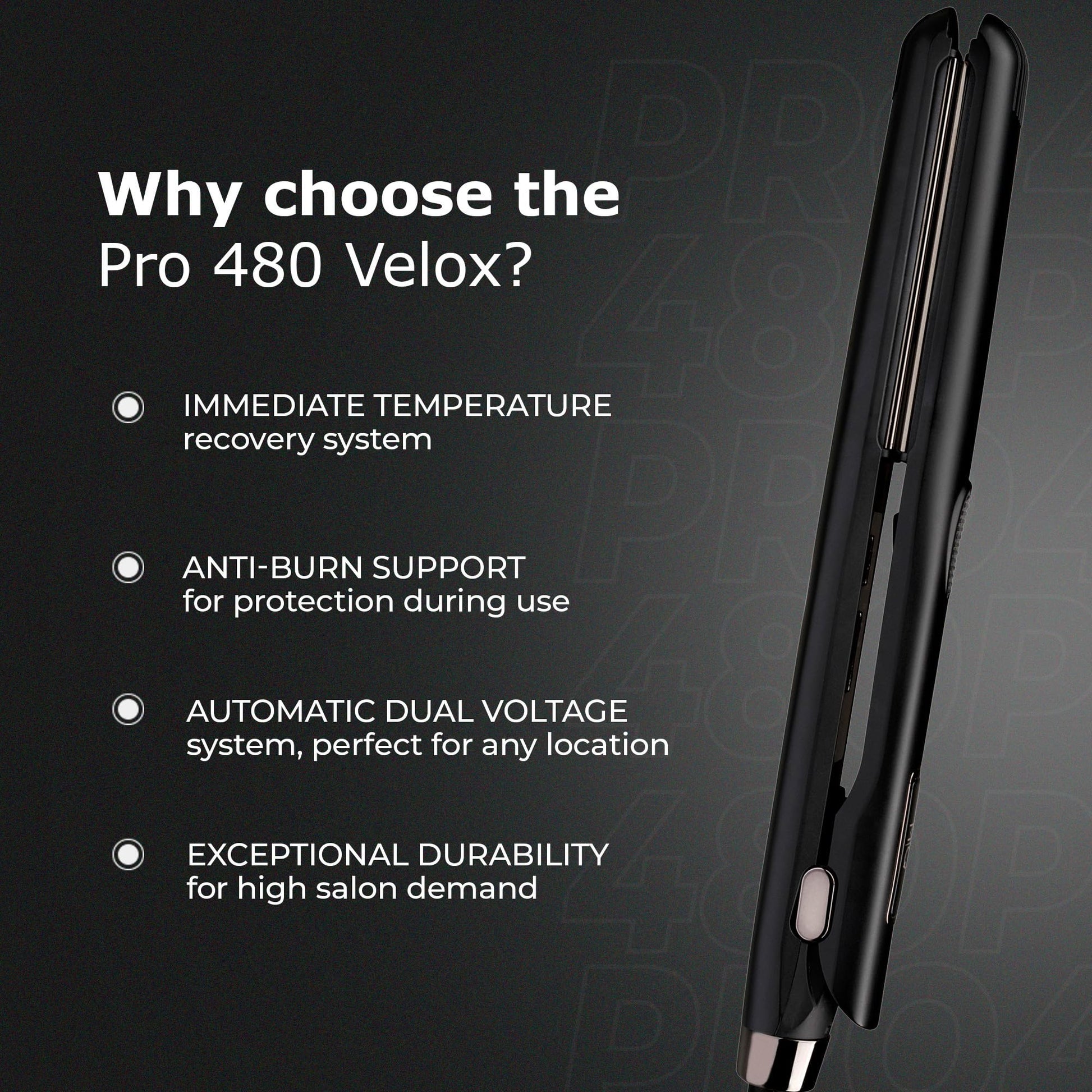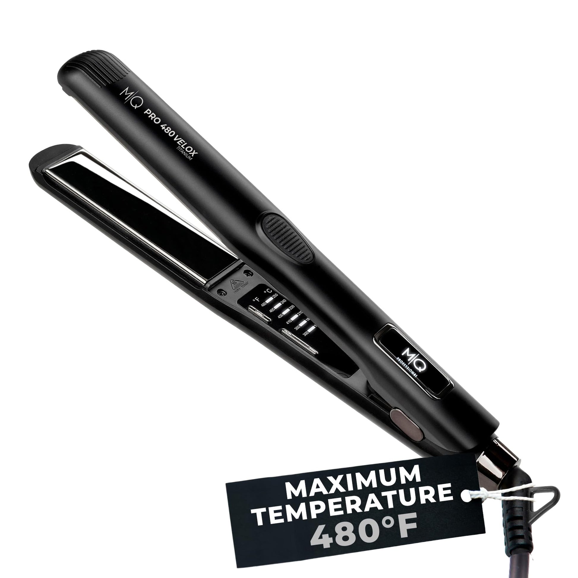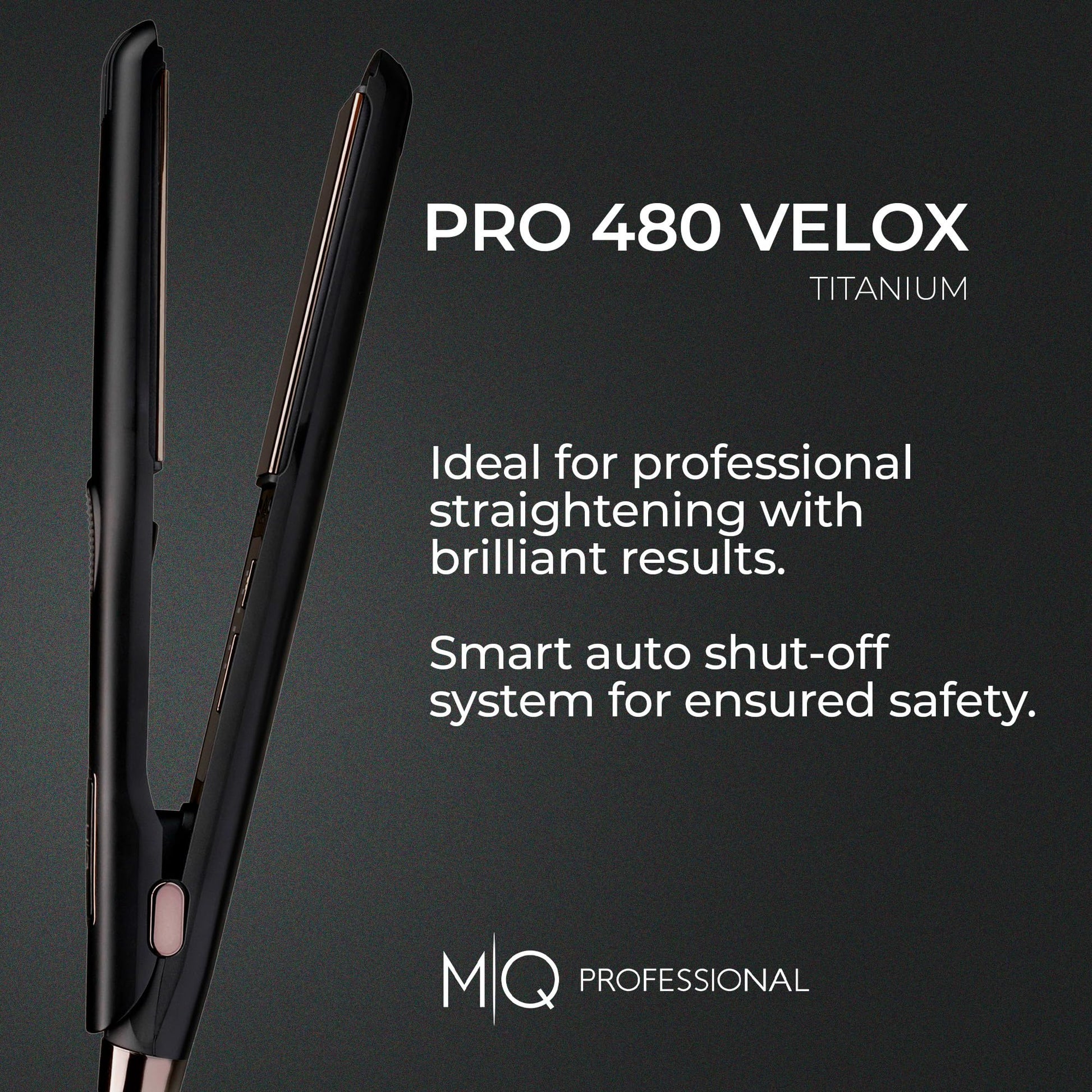 MQ Hair - Lisseur professionnel Pro 480 Velox - Fer plat, plaques en titane avancées, chauffage rapide, résultats dignes d'un salon, sécurité renforcée - Design ergonomique élégant - Noir