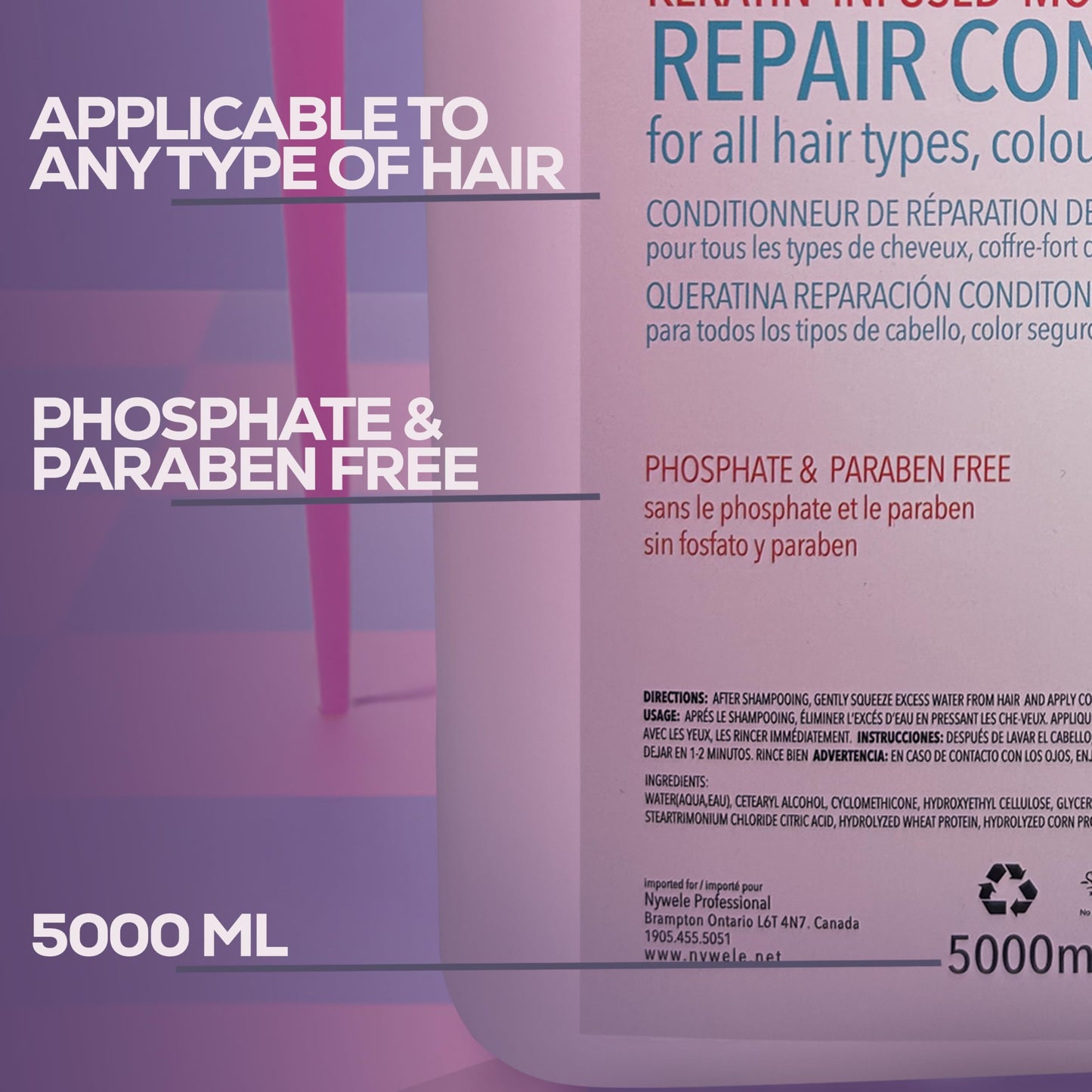 Détails : L'après-shampoing réparateur hydratant à la kératine Nywéle est conçu pour les cheveux fragilisés ou abîmés par la coloration, les traitements chimiques ou les appareils chauffants. Il répare les cheveux en les enveloppant d'une formule hautement concentrée, riche en huile d'argan antioxydante, en kératine reconstructrice et en acides gras. Il restaure l'élasticité, l'hydratation et la souplesse des cheveux.