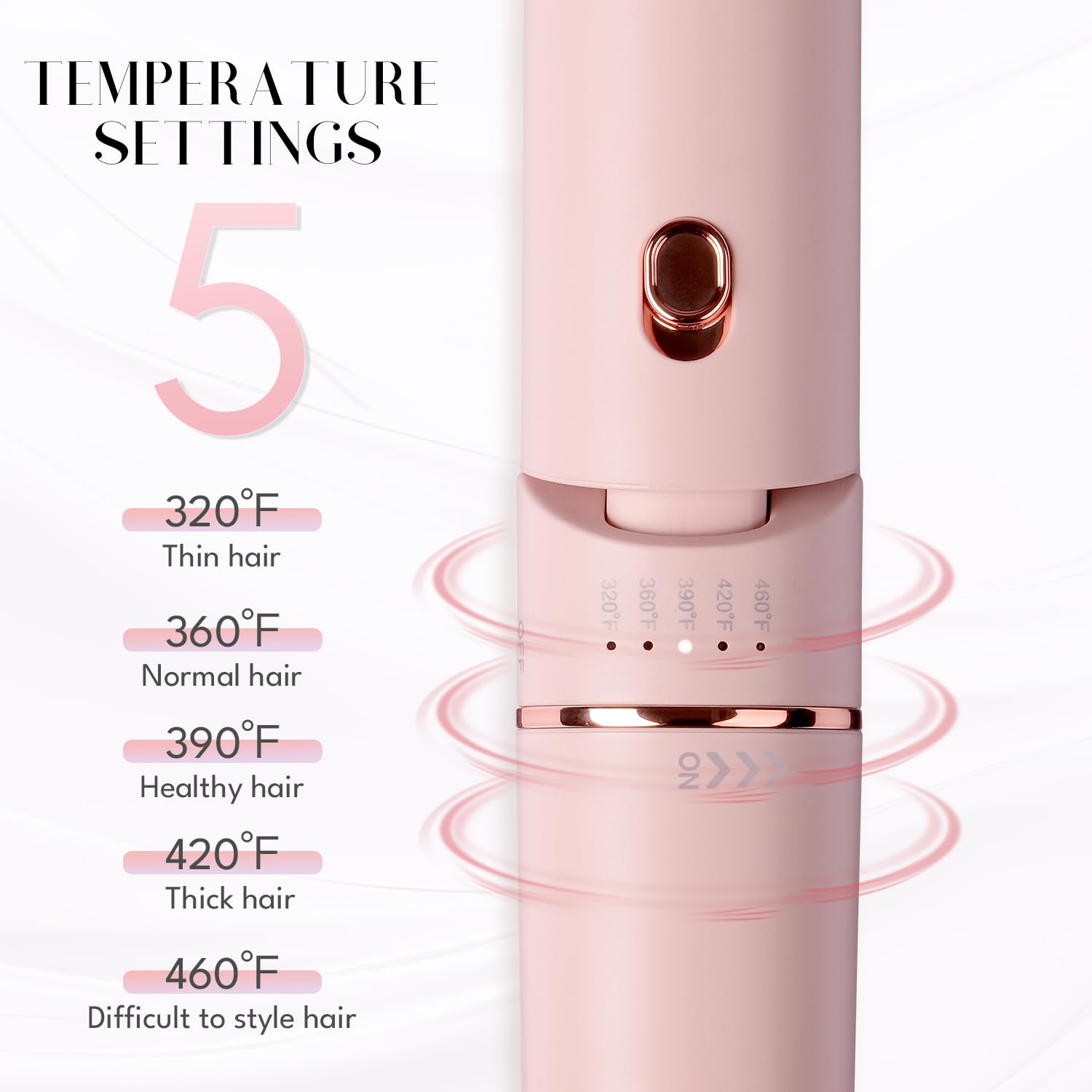 Fer à lisser et boucler Rozamor 2 en 1, fer plat en titane rose, styler anti-brûlure 2,5 cm, ions négatifs infrarouges, coiffures longue durée, double tension