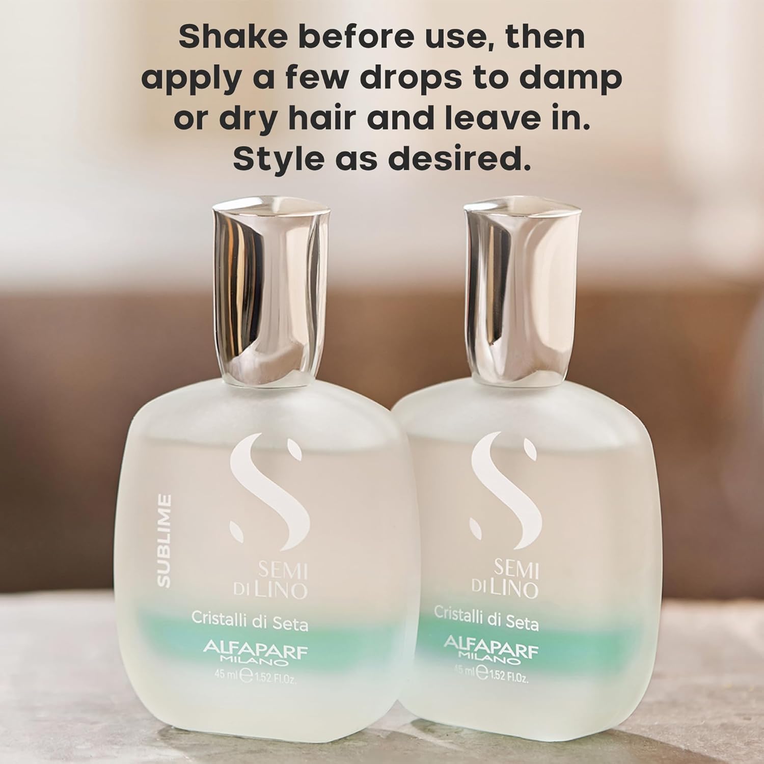 Alfaparf Milano Semi Di Lino Sublime Cristalli Di Seta - Finishing + Smoothing Serum for Fine Hair - Nourishing Hair Oil to Protect & Add Shine - Professional Hair Care (1.52 oz / 45 ml)