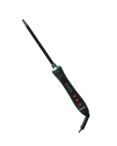 3/8" ultra-slim barrel (10 mm)Tourmaline and ceramic, natural sources of negative ions and far infrared heat, eliminate frizz and seal in moisture, leaving hair smooth and shinyFast heat-up & recovery, up to 410 F (210 C)5 LED temperature settingsCool tip for easy manipulationErgonomic: lightweight and comfortable to use60 minute auto shut-off8.8' (2.7 m) 360 swivel power cord