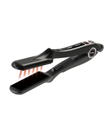 The New Classic Infrared is perfect for color-treated, natural and coarse hair. The infrared technology allows heat to penetrate the cortex of the hair while protecting its integrity. Achieve smooth, straight hair in one pass. The stationary plates are optimized for maximum straightening. It's the #1 choice for Keratin and Brazilian treatments among professional stylists.Features Infrared technology detoxifies and sanitizes hair while reducing heat damage with each pass. The rays are known to increase blood flow, stimulating hair growth. The black (proprietary blend) titanium plates lock in moisture and reduce static. Produces negative ions, sealing cuticles, increasing shine. The ventilation system releases excess high heat, preventing internal and physical damage. Built-in ceramic heaters enable instant heat recovery, providing consistent heat during use. Fully digital temperature settings [280F - 450F] Dual voltage capabilities [110V - 240V] Built-in, automatic shut-off, safety feature after 30 minutes of non-use. Convenient 9FT swivel cord for easy use and adaptability. Deluxe thumb grip, ergonomic design, and cool tip make styling more comfortable.