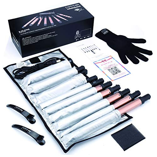 Curling Iron Set 8 in 1 Curling Wand with 8 Interchangeable Ceramic Barrels Hair Wand - Fast Heating Professional Hair Curling Wand with Heat Protective Glove and Travel Bag-1601531849