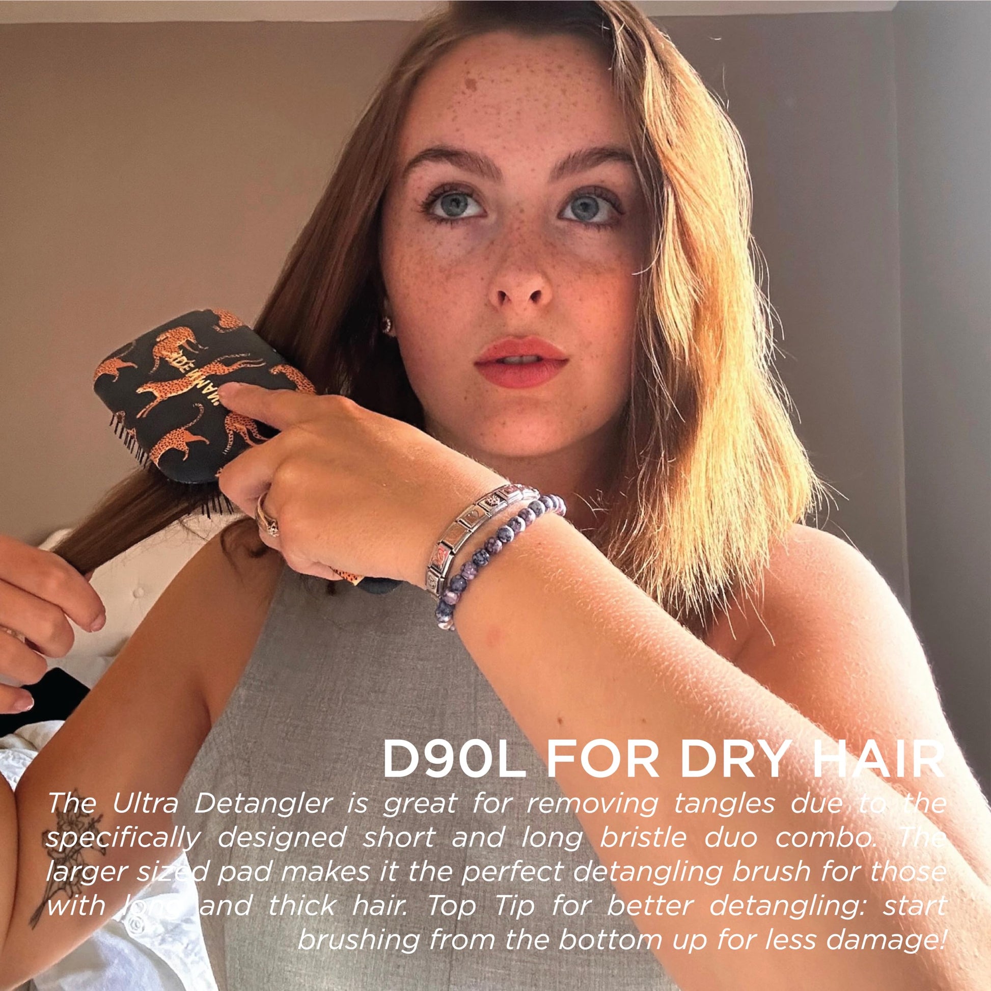 Details: The Ulta Detangler is the larger sister to our D90 Mini Detangler. This brush is great for powerful detangling of both wet and dry hair and any type ranging from straight to curly. Denman's Ultra Detangler is designed with super-strength nylon bristles which allow it to glide through knots and tangles without catch or drag. The air-cushioned has been engineered to contour to the curves of the head for comfortable brushing. Also available in other colours.