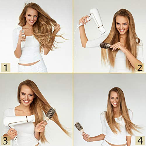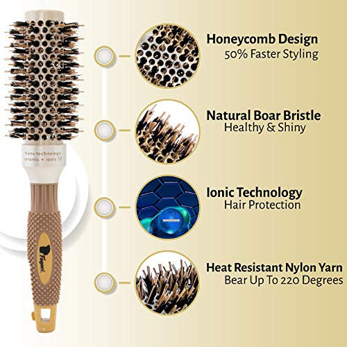 Fagaci Small Round Brush for Blow Drying with Natural Boar Bristle, Round Brush | Nano Technology Ceramic + Ionic for Hair Styling, Drying, Healthy Hair and Add Volume | Hair Brush + 4 Styling Clips