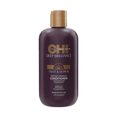 CHI Deep Brilliance Optimum Moisture Conditioner instantly hydrates hair using a blend of moisture-rich Olive Oil & Monoi Oil that restores moisture, while strengthening and improving the condition of dry, damaged hair.