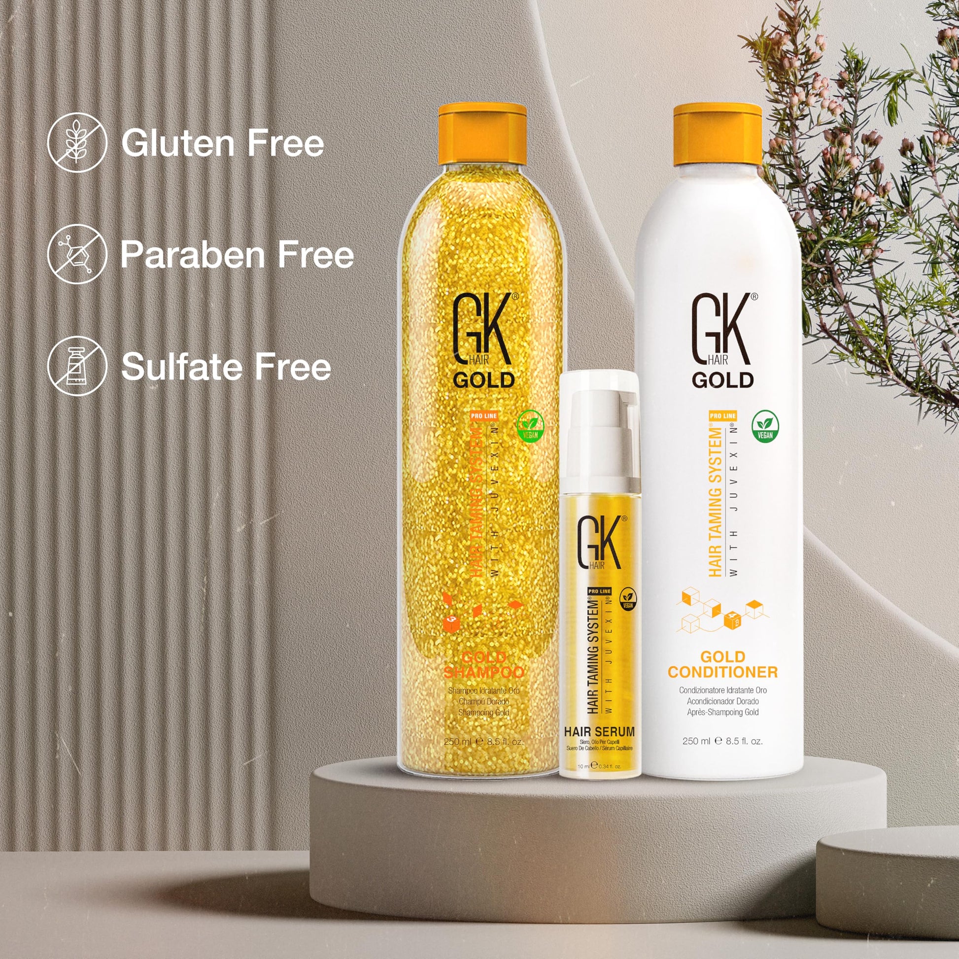 GK Hair Gold Shampoo and Conditioner Duo with Free Argan Oil Serum contains argan Oil, Shea Butter, Natural Oils for Hairs Moisturizing Shine and Protection