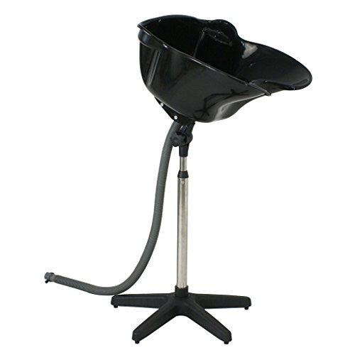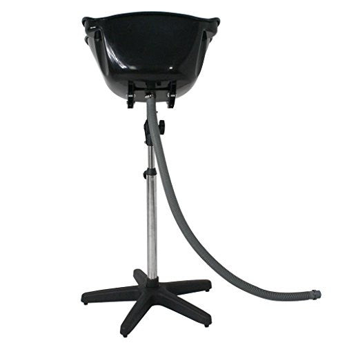 Height Adjustable Portable Salon Deep Shampoo Basin Sink Hair Treatment Bowl with Drain Hose- Black
