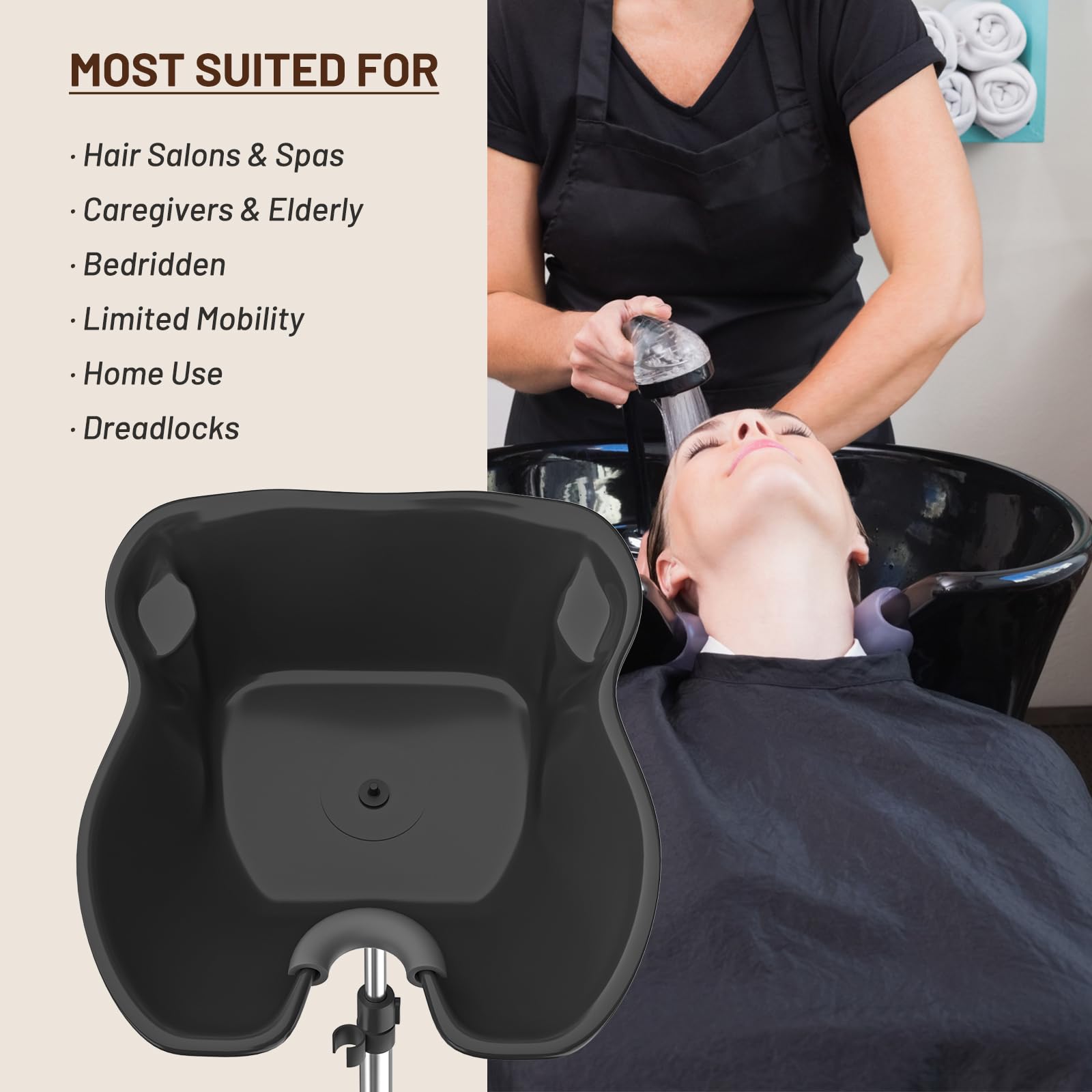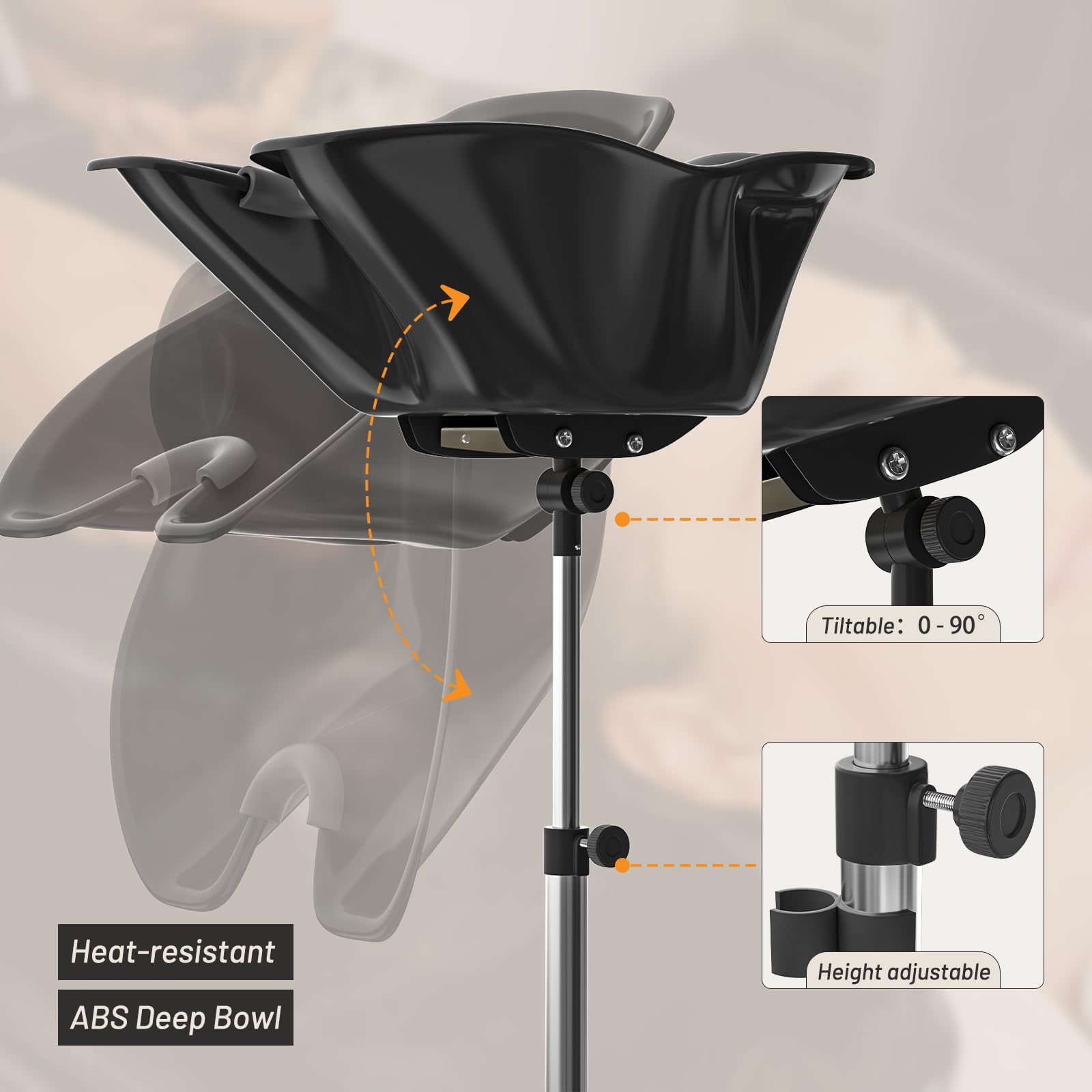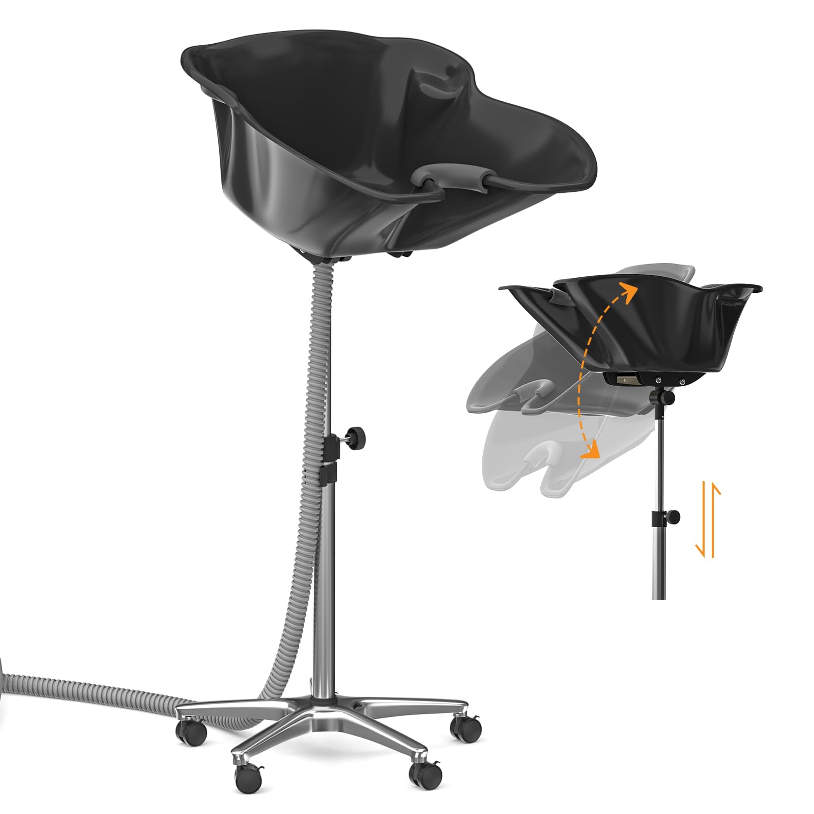Height Angle Adjustable Portable Shampoo Basin Hair Washing Sink Shampoo Bowl for Home and Salon, 118.11” Drain Hose, Stainless Steel Base, Lockable Wheels