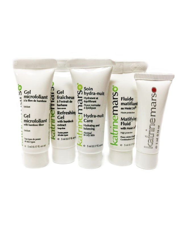 Includes: Hydra-nuit Care 5ml, Gel Microfoliant with Bamboo Fiber 5ml, Refreshing Gel with burdock extract 5ml, Matifying Fluid 5ml, Phythoactive Complex 5ml.