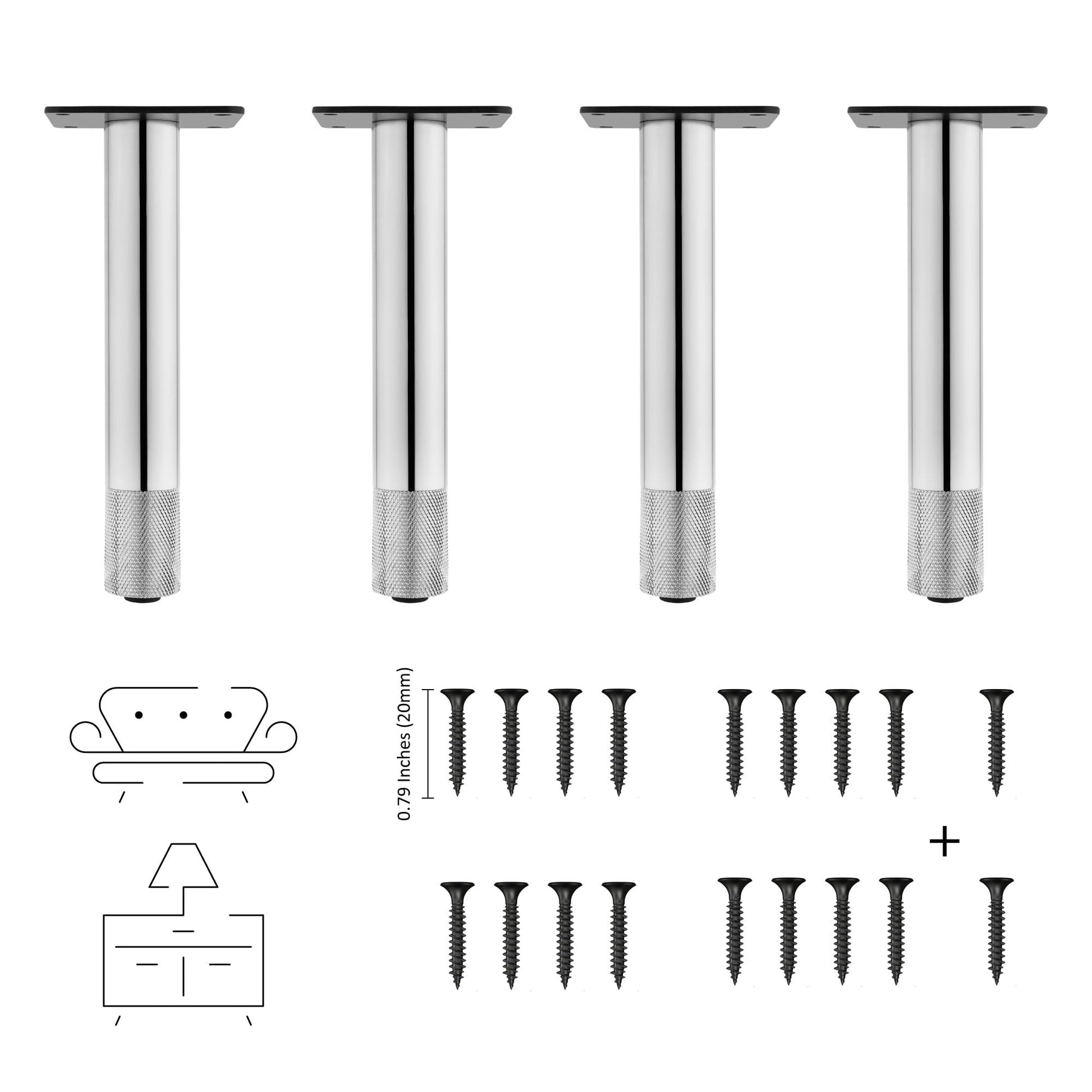 KMS Dali 8 Inch Chrome Furniture Legs, Set of 4 - Modern Aluminum Support Legs for Sofas, Tables, Desks, Cabinets and Beds - Stylish Metal Legs with Floor Protectors for Heavy-Duty Replacement
