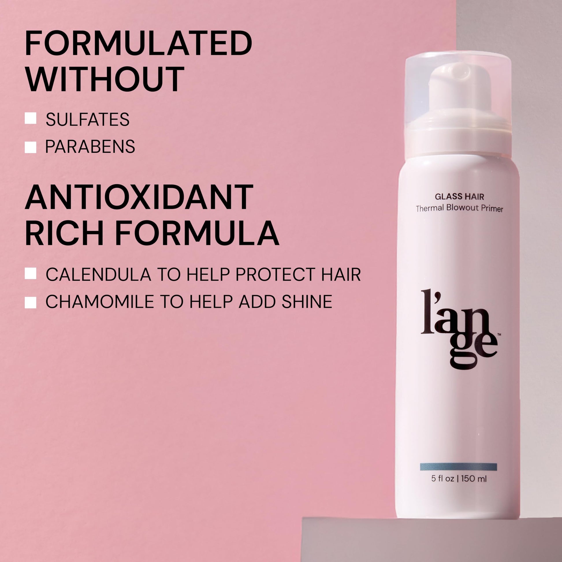 L'ANGE HAIR Glass Hair Thermal Blowout Primer | Heat Protectant Spray for Frizz-Free Styling | Lightweight Formula for Smooth, Silky Hair | Humidity-Resistant Shine Enhancer | 5 fl oz Bottle