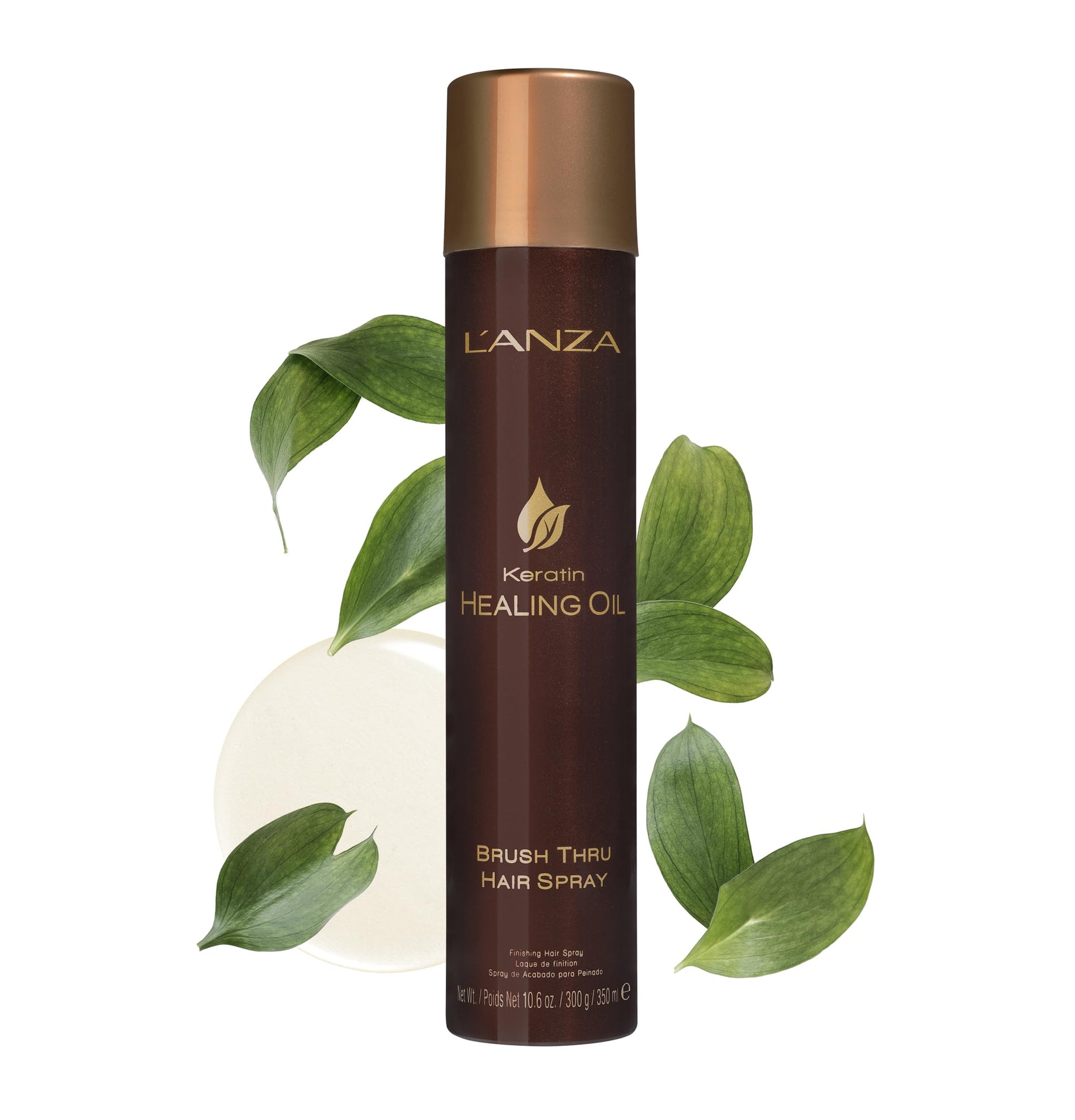 L'ANZA Keratin Healing Oil Brush Thru Hair Spray with Medium Hold Effect, For a Shiny Finishing and a Long-lasting Look, With Triple UV and Heat Protection, Suitable For All Hair Types (10.6 Fl Oz)