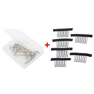 Lihui 30 Pcs Hair T Pins Wig T-Pins For Holding Wigs And 6 Pcs Black Wig Combs Wig Clips For Lace Wig Cap(30 Pcs T Pins And 6 Pcs Wig Clips)