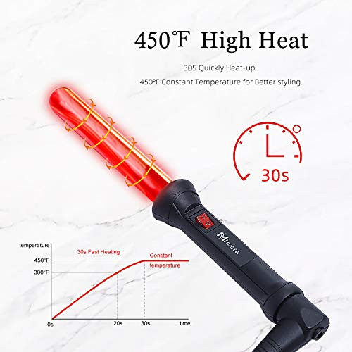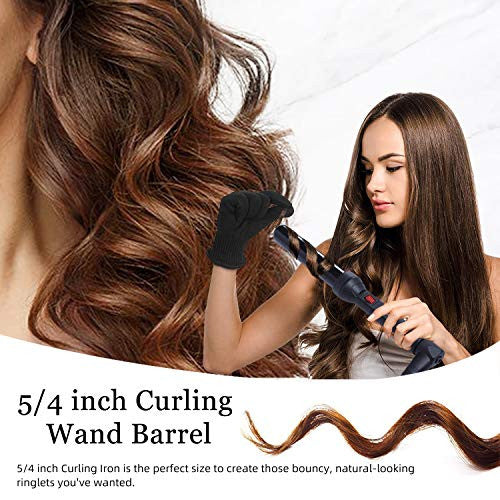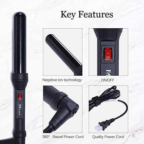 MICSTA Negative Ions Curling Iron Long Barrel Ceramic Coated, Dual Voltage Curling Wand Quick Heating, Beach Wave Hair Curler Fast Styling for Long Hair, with Glove and Mat, Black1-1/4" Christmas Gift