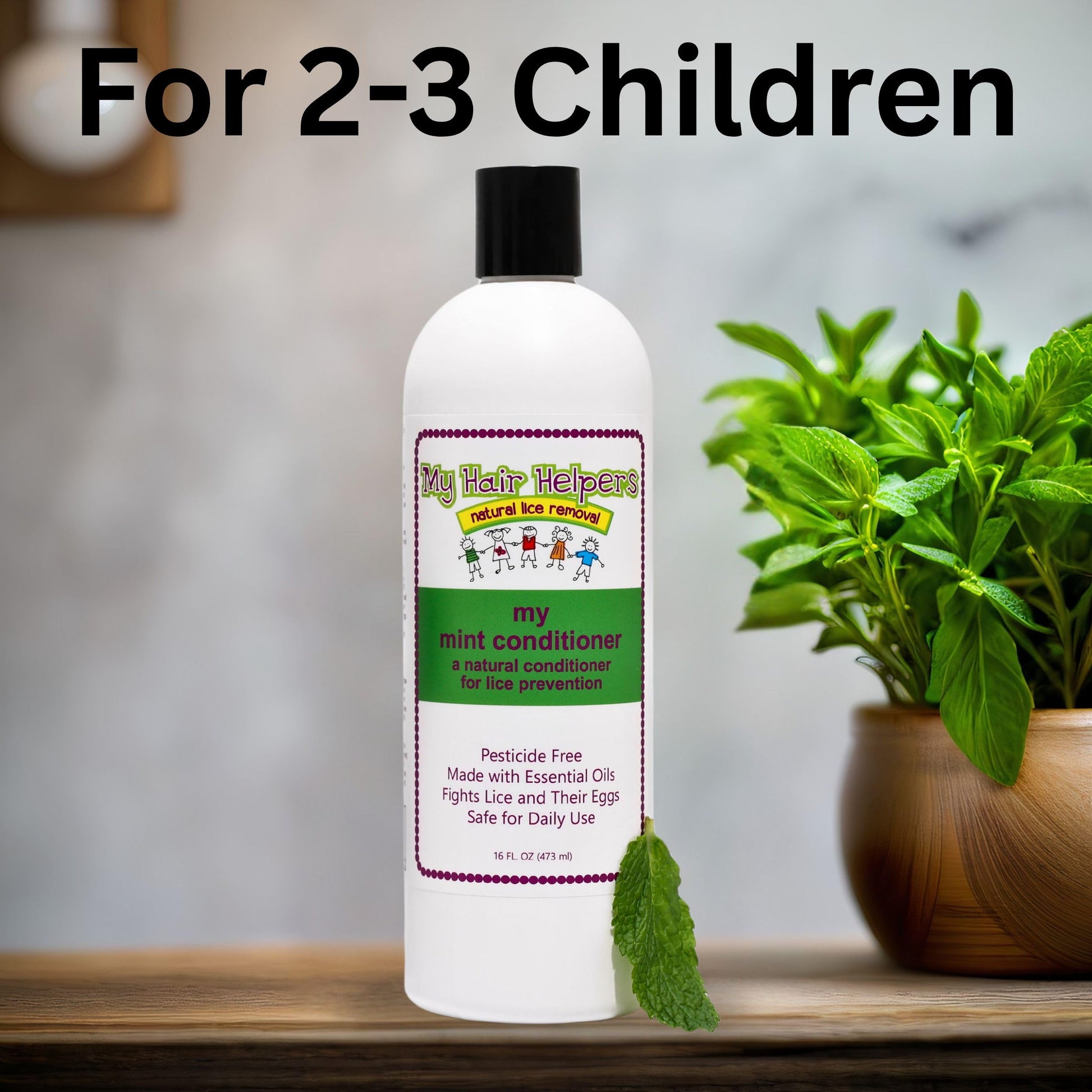 My Hair Helpers Lice Prevention Conditioner, Mint, Neem, Rosemary and Tea Tree Oil, Sulfate-Free, 16 Ounces, Works for 2-3 Kids