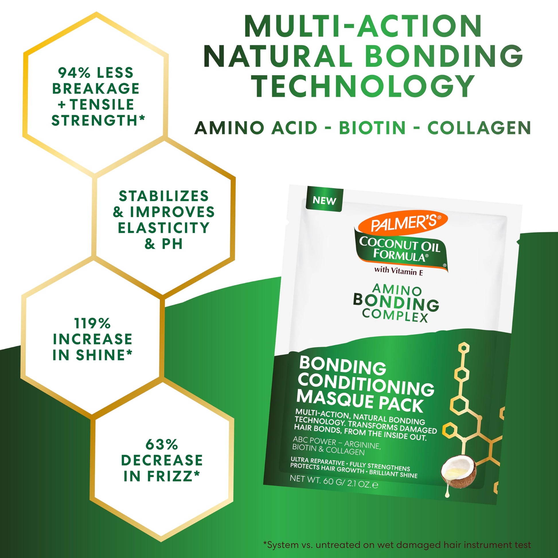 Palmer's Amino Bonding Complex Hair Mask, Intense Conditioning Masque Pack with Coconut Oil & Vitamin E, Heat Protectant, Anti Frizz, Adds Shine, Protects Hair Growth, All Hair Types, 2.1 oz packette