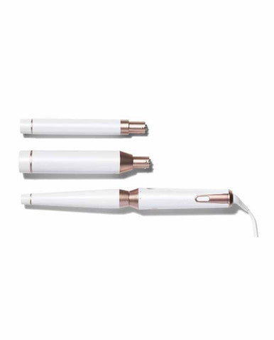 An exceptional triple-action tool that's out of this whirl. With three interchangeable barrels, the Whirl Trio opens up a myriad of styling possibilities. Transition from spiral curls to mermaid waves, from tousled waves to flipped ends-the options are as endless as your imagination.