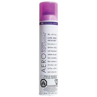 Use Aero Body Infusion on damp hair and simply mist the product over the hair about 12 inches away. As you begin to blow dry, your hair will shine and appear to double in volume. The aerosol application allows for the lightest layer of body enhancers imaginable.