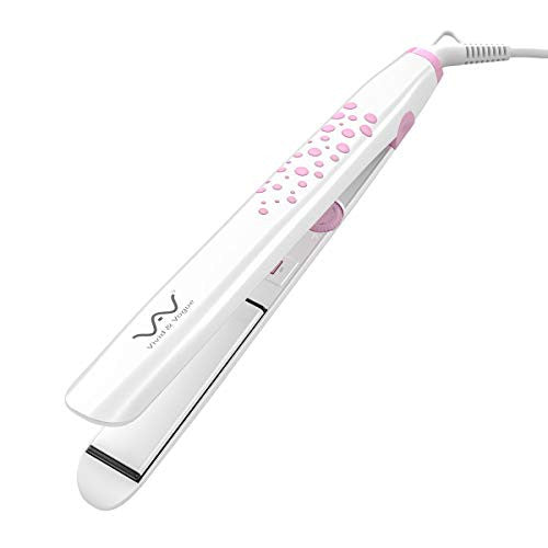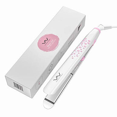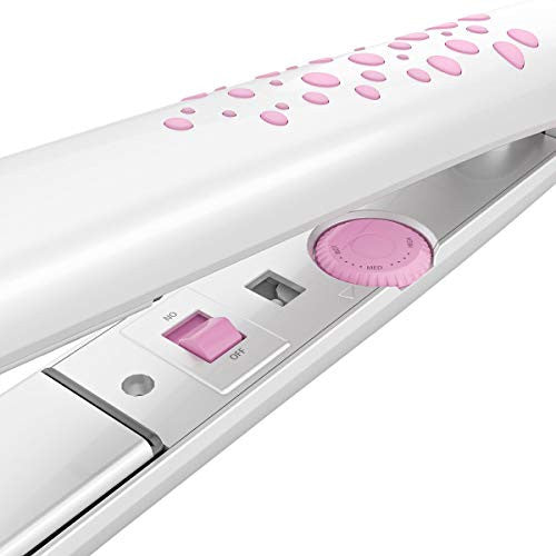 直发器 电气石陶瓷 2 合 1 平板夹 自动关闭 3 档温度控制 1 英寸珍珠白 加 2 个沙龙夹